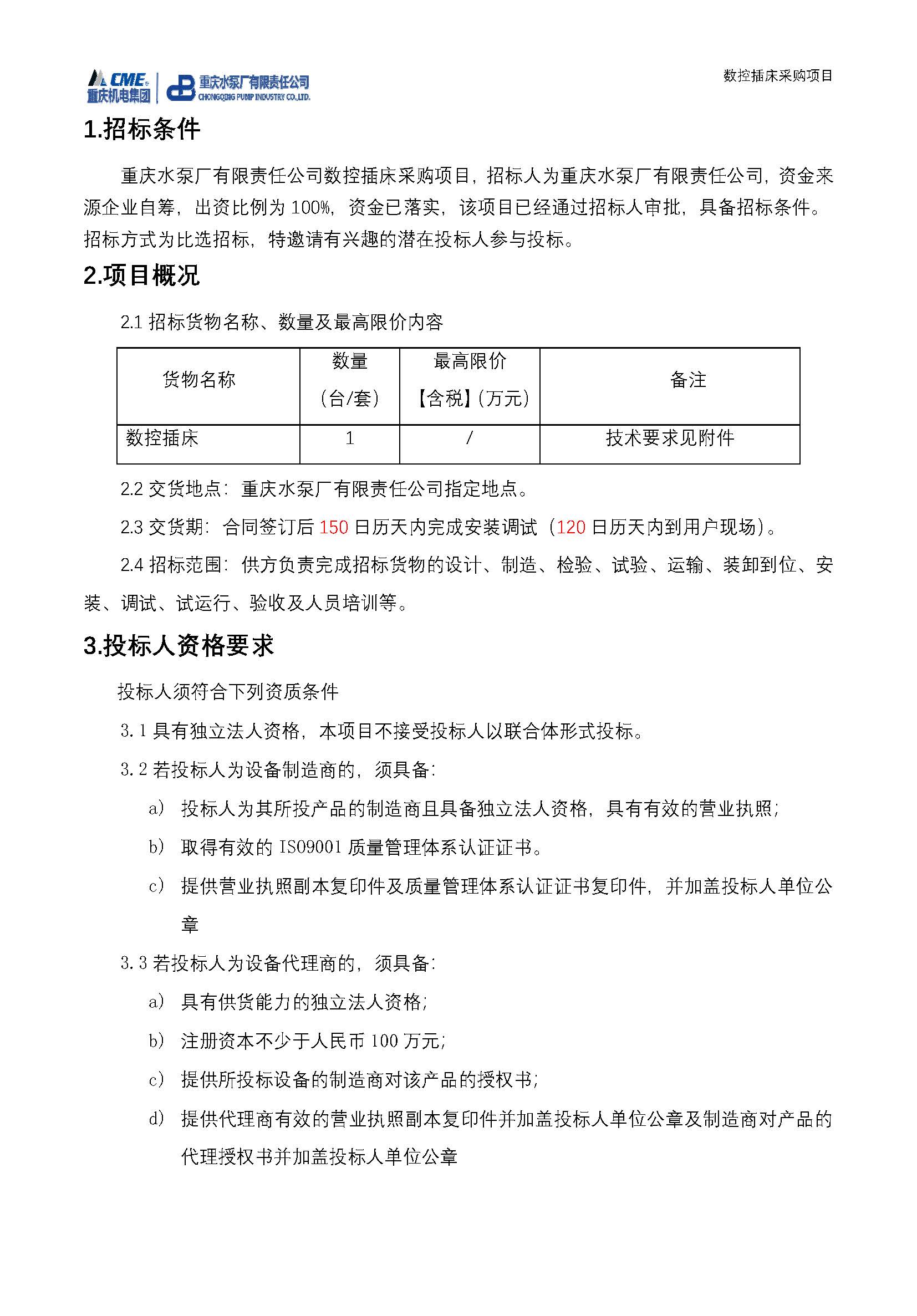 數(shù)控插床采購(gòu)招標(biāo)公告