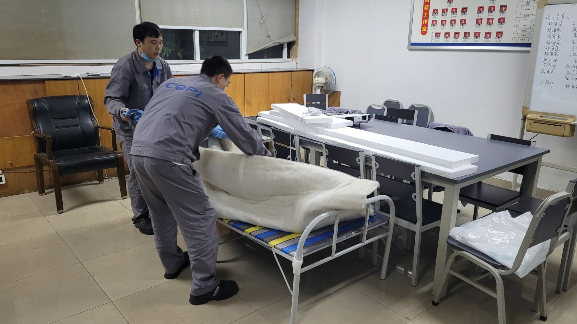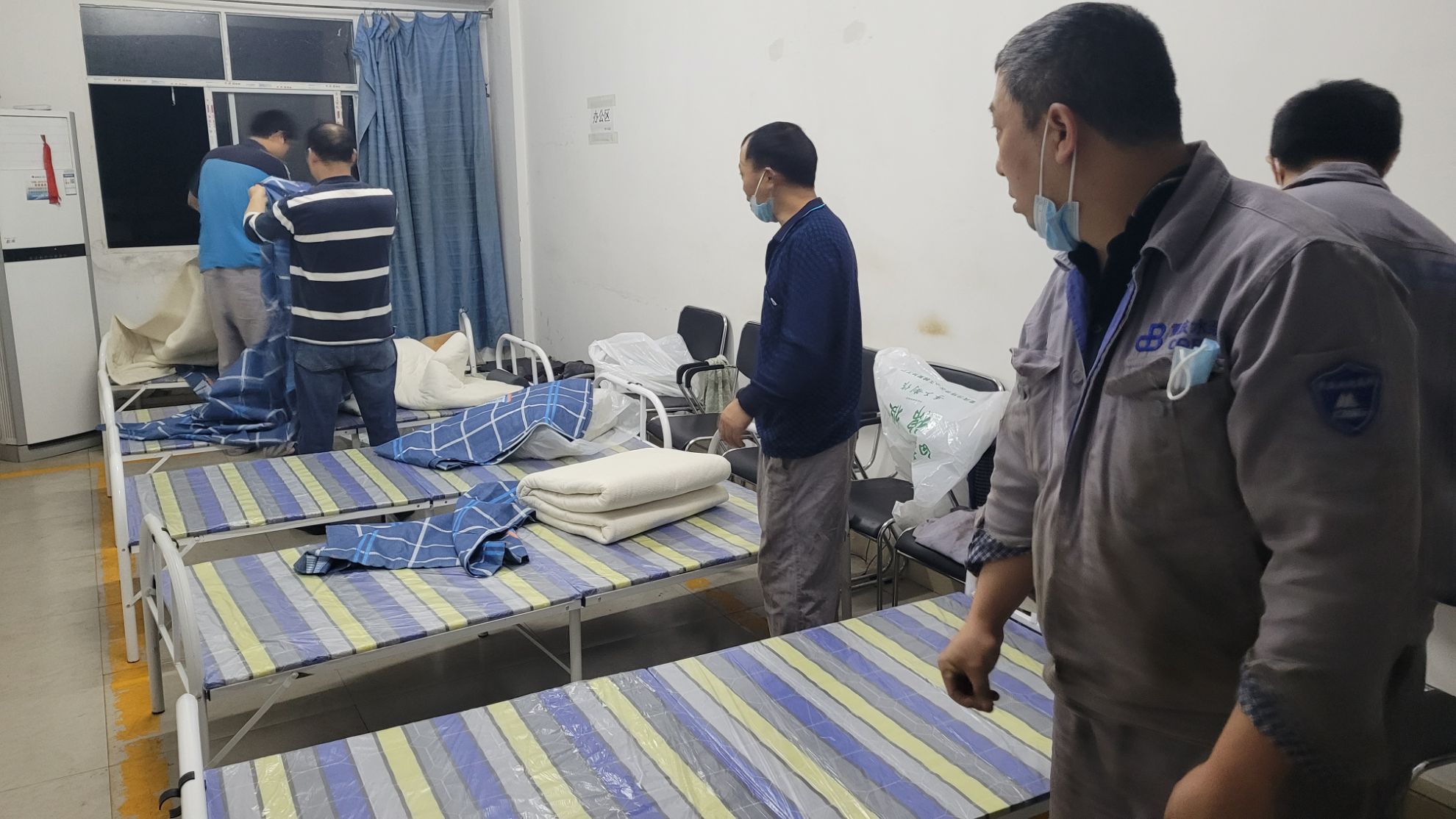 各職能部門認真落實公司疫情防控領導小組要求,嚴格閉環管理措施,落實每日檢測核酸、場所每日消殺。公司順利完成了后勤保障和物資采購工作,于11日晚及時向駐廠人員統一分發折疊床、被褥、毛巾、牙膏牙刷等生活物資。機加中心、總裝車間、容器車間、試驗站、涂裝車間、儲運處、設備部等一線車間管理干部堅守在第一線,有序組織物資領取、床鋪安置、應急藥品儲備等工作。