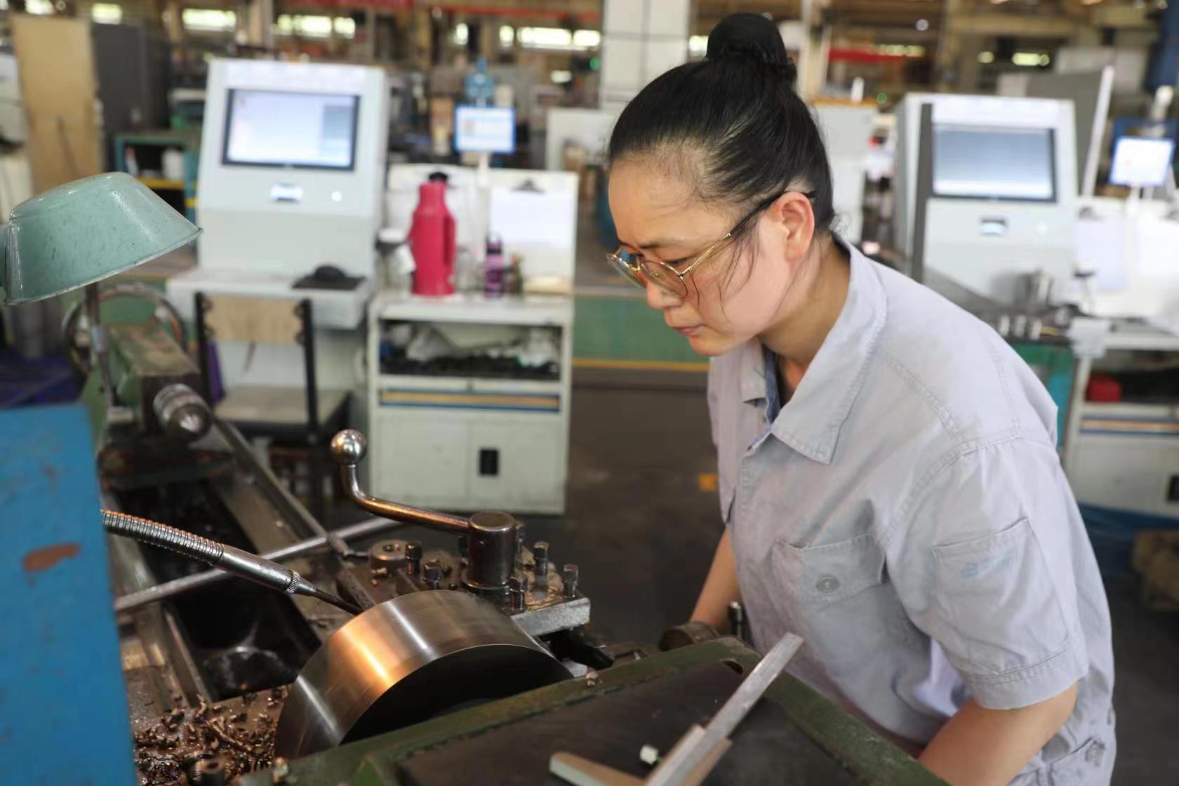 機加中心以朱舉華為代表的技師師傅們兢兢業業,鏡頭中的彭麗霞更是巾幗不讓須眉,熟練地對零件進行加工;熱處理區域在王軍波的帶隊下如火如荼地進行零件淬火出爐工序,車間局部氣溫節節攀升,一滴滴汗水從眉梢滑落,大家也顧不上擦拭,精力都聚集在加工的零件上。
