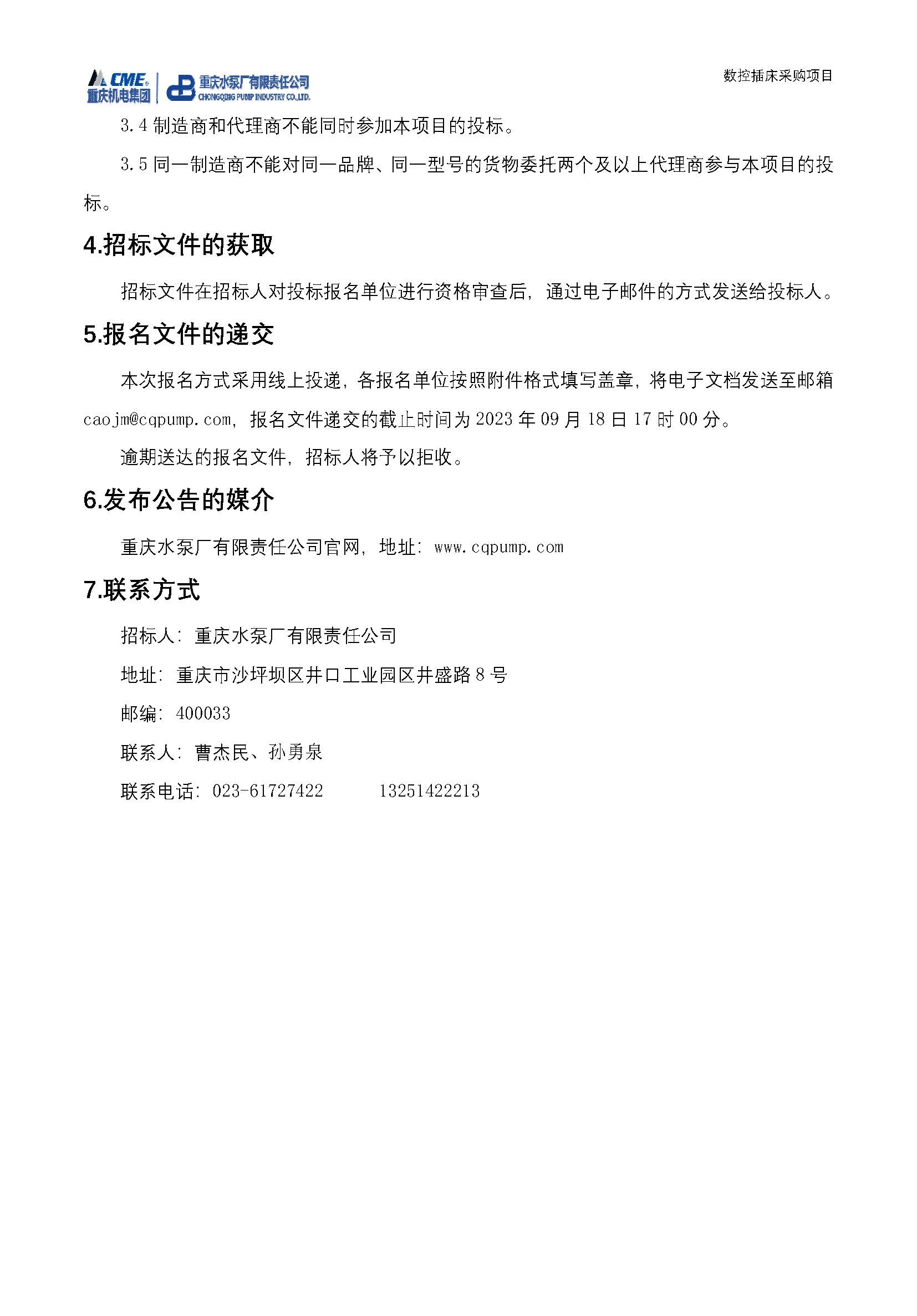 數(shù)控插床采購招標(biāo)公告