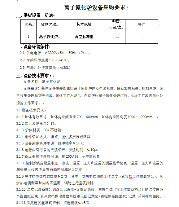 離子氮化爐 第三次招標公告