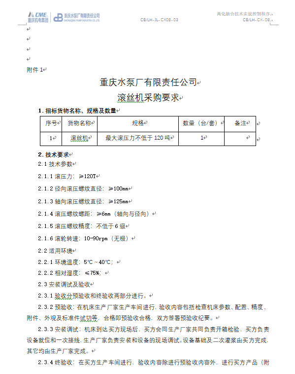 大型往復隔膜泵研發測試能力建設項目 滾絲機招標公告